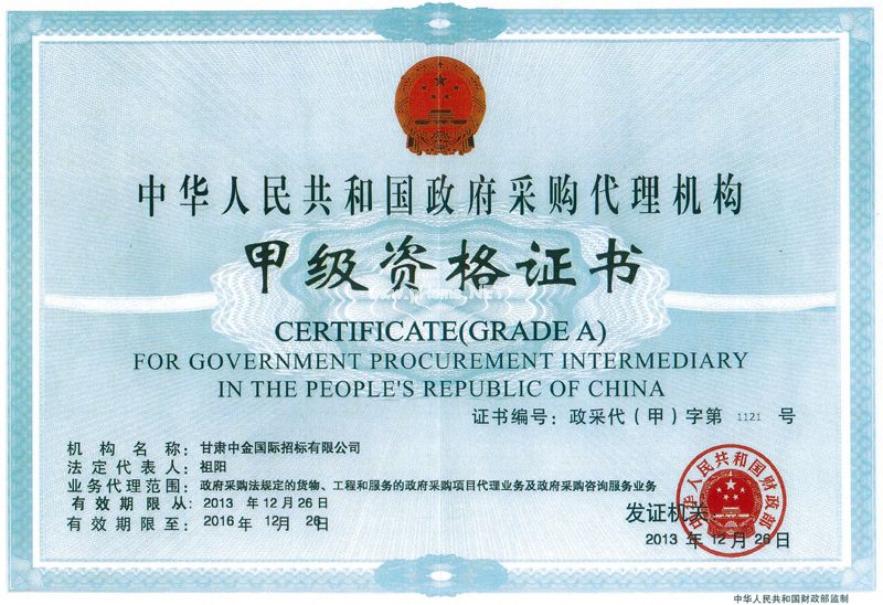 甘肅中金國際招標有限公司成立于2011年11月,注冊資金500萬元,于2012年5月取得由省財政廳頒發(fā)的政府采購代理機構(gòu)乙級資質(zhì)(政采代【乙】字第甘022號),并于2013年12月取得由中華人民共和國財政部頒發(fā)的政府采購代理機構(gòu)甲級資質(zhì)(政采代【甲】字第1121號),在2016年1月取得由甘肅省住房和城鄉(xiāng)建設(shè)廳頒發(fā)的工程招標代理機構(gòu)乙級資質(zhì)(F262005074);2015年4月取得機電產(chǎn)品國際招標代理資質(zhì),僅在短短幾年內(nèi)成為本行業(yè)發(fā)展速度最快的公司之一。 甘肅中金國際招標有限公司由海外留學(xué)回國學(xué)生擔(dān)任核心領(lǐng)導(dǎo),公司下設(shè)商務(wù)部、工程部、財務(wù)部及辦公室等業(yè)務(wù)部門,目前公司在職員工50余人,其中本科以上學(xué)歷占50%以上,擁有中高級國家技術(shù)職稱人員為19人。公司地處蘭州市繁華地段,交通非常便捷;辦公環(huán)境優(yōu)良,擁有寬敞明亮的開標大廳、評標會議室和會客室;計算機網(wǎng)絡(luò)管理辦公系統(tǒng),實現(xiàn)了全方位的辦公自動化;同時,公司擁有一支具有豐富招標經(jīng)驗的專業(yè)團隊,憑借過硬的專業(yè)知識、積極主動的服務(wù)意識、科學(xué)嚴謹?shù)墓ぷ髯黠L(fēng)服務(wù)于省內(nèi)各行政機關(guān)、企事業(yè)單位,在招標服務(wù)過程中,我們兢兢業(yè)業(yè),踏實工作,嚴格遵守國家規(guī)定和程序進行相關(guān)招標服務(wù),受到了眾多業(yè)主及投標人的一致好評。 中金公司將以高效率、高質(zhì)量及好服務(wù)為各業(yè)主單位和投標人提供優(yōu)質(zhì)和專業(yè)的招標服務(wù)。